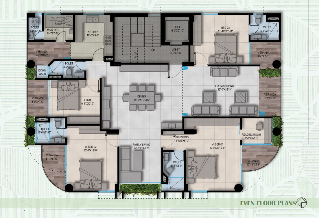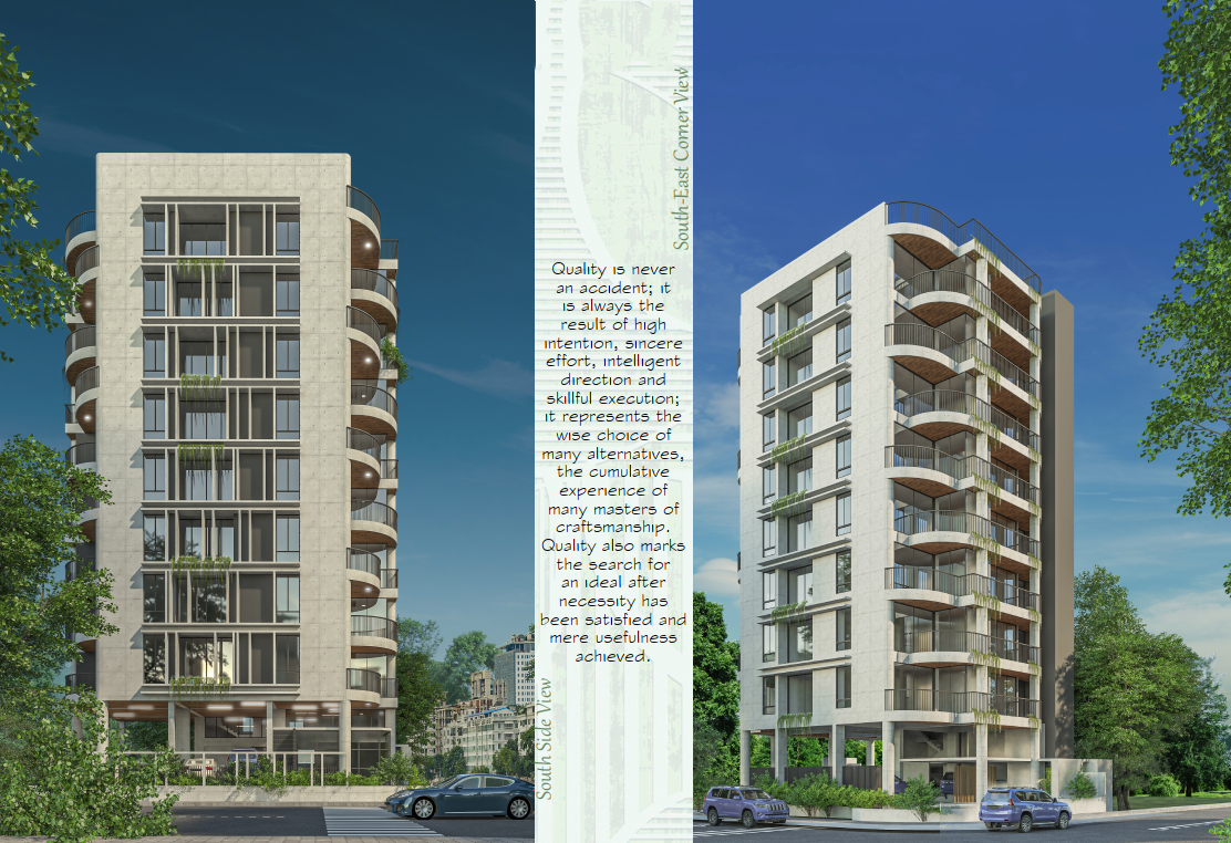 We brings you a premium living experience at the heart of Sector 16, Jolshiri Abashon. Built on a 5 Katha corner plot with wide roads on three sides, this 9-storied building is designed to maximize natural light, airflow, and open space.